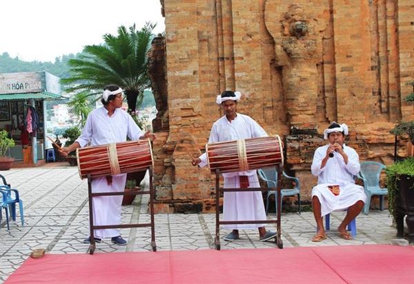 (Biểu diễn trống Chăm dưới chân tháp bà Ponagar Nha Trang)