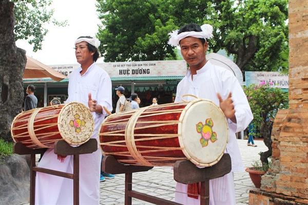(Nghệ nhân Chăm diễn tấu trống Ghi năng và kèn Saranai)