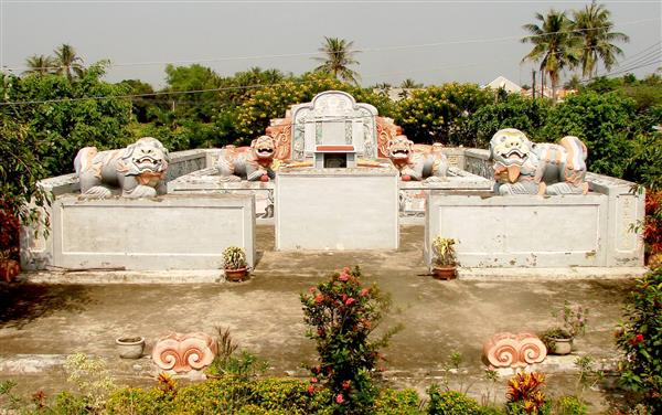 - Về hoa văn trang trí: Các họa tiết trang trí ô hộc và các văn tự phần lớn được đắp trên các tường thành: La Thành, Bửu Thành, Uynh Thành….Hệ thống ô hộc dàn trải trong không gian của từng vòng thành bao bọc khu Lăng mộ. Đề tài thể hiện phỏng theo những cảnh tích cổ như: Nhị thập tứ hiếu (Lão Lai Tử, Quách Cự, Lục Tích, Giang Cách, Hoàng Hương, Dương Hương, Tăng Tử, Mẫn Tử Khiên…), thầy trò Đường Tăng đi thỉnh kinh, Sơn thủy tùng định, Bát tiên, Tùng lộc, Dương liễu, Song phụng triều nghi,…Các cảnh tích này thể hiện lối sống thanh tao, trong sáng của người quân tử; đạo nghĩa làm người…nhằm thể hiện đạo lý “Uống nước nhớ nguồn”.