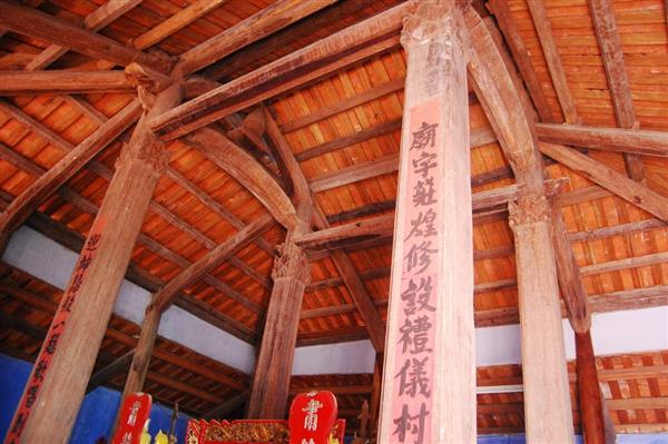 Đại đình được xây dựng theo kết cấu truyền thống với bộ khung gỗ có 04 cột gỗ lớn chính giữa trông rất bề thế, vững chắc đỡ lấy hệ mái có cổ lầu là kiến trúc truyền thống của Khánh Hòa. Cùng với mái ngói âm dương, hệ cửa theo kiểu “Thượng song hạ bản” và những hình tượng linh vật: Lưỡng long tranh châu, con nghê, con dơi trên đỉnh mái, bờ dải và các đầu đao nổi bật lên nền trời xanh biếc. Đó là những giá trị kiến trúc nghệ thuật cổ đặc sắc của đình làng Việt Nam.