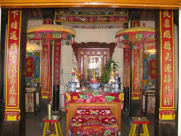 Chánh điện treo 01 bức hoành phi bằng gỗ khắc chữ Hán Nôm “Vạn An miếu”. Hệ cửa thiết kế theo kiểu thượng song hạ bản. Giữa chính điện đặt ban thờ hội đồng, hai bên đặt cặp lọng vải, phía trên ban thờ treo 01 bức chấn bằng vải. Giáp với tường hồi phía sau là khám thờ bằng gỗ được chạm trổ rất tỉ mỉ và khắc chữ Hán Nôm “Thần” ( 神 ). Bốn cột gỗ vuông đỡ hệ mái Chánh điện, trên thân cột chạm khắc hai cặp câu đối bằng chữ Hán Nôm và được sơn son thếp vàng, phía trên chạm trổ hoa văn hình hoa lá. Đầu dư của các thanh kẻ và kèo cũng được chạm khắc cách điệu tạo sự mềm mại trong di tích. Phía trong chính điện treo hai cặp câu đối ca ngợi công đức của Trịnh Phong: