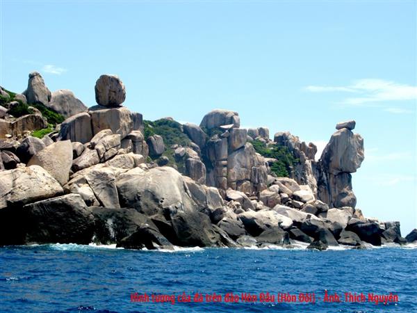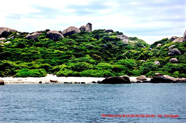 Điều mà chúng ta khâm phục là cha ông ta từ ngàn xưa đã đặt tên cho đảo là Hòn Đầu. Đó phải chăng chính vì hình tượng của ba khối đá khổng lồ mang hình đầu người và biến hoá một cách sinh động qua mỗi góc nhìn khác nhau như vậy mà người xưa đã đặt tên cho địa danh. Đặc biệt, phía Tây Bắc và phía Tây của đảo có những bãi cát nhỏ xinh đẹp, thuận tiện cho du khách thưởng thức tắm biển nơi đảo xa. Ngoài ra, bên trong đảo còn có hang động là nơi sinh sản của loài chim yến, đặc sản quý giá, được coi là “vàng trắng” của Khánh Hòa.