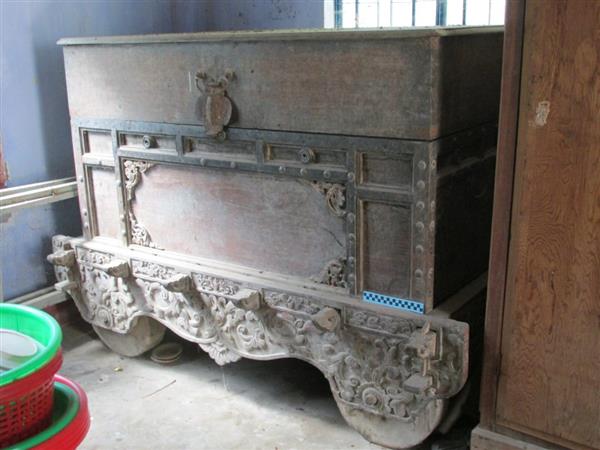 (Rương gỗ có bánh xe ở đình Trà Long)