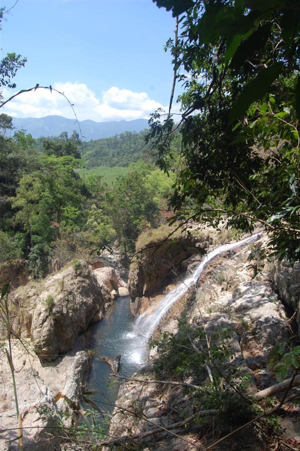 Men theo bờ đá dốc, giữa hai bên bờ đá là khe nước khá hẹp và sâu, có thác nước nhỏ. Chúng ta lại đi theo lối mòn của sườn núi bên phải sẽ lên đến mặt bằng thứ hai. Lên mặt bằng phía trên rất phù hợp với những ai ưa thích khám phá mà không quá mạo hiểm. Với lối mòn nhỏ, thoai thoải phải bám vào cây dây leo to như dây thừng, thỉnh thoảng lại gặp cây phong lan tầm gửi, hay vài ba chú bướm rừng vờn nhau khoe sắc trong nắng vàng.