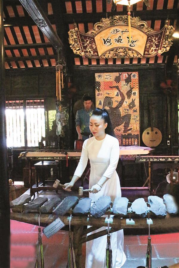 (Du khách đang thưởng thức nhạc cụ dân tộc)