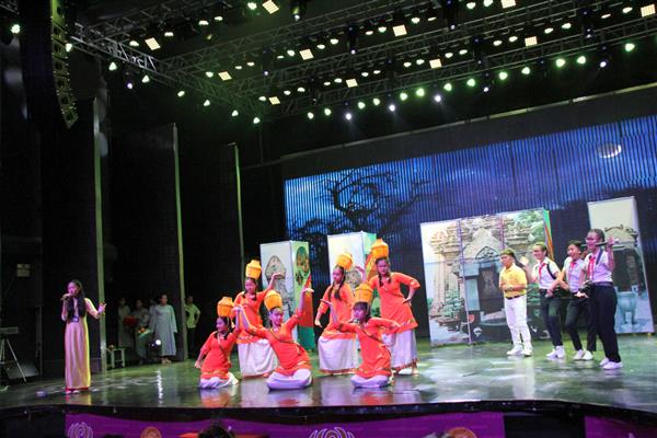 (Học sinh Ngọc Khánh- đội TP Nha Trang giới thiệu Tháp Bà Ponagar trong phần thi em tập làm hướng viên du lịch)