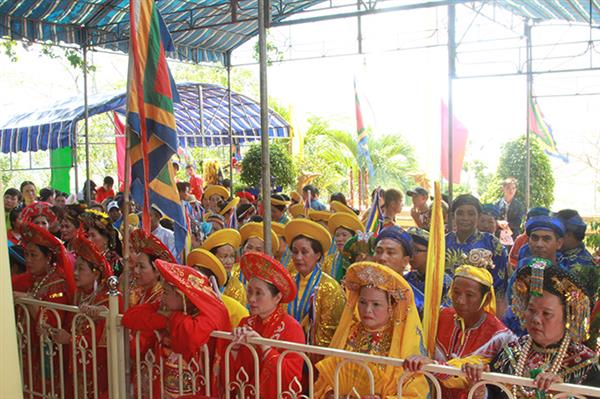 Đông đảo khách hành hương trong trang phục đẹp, lộng lẫy thành tâm hướng về Thánh Mẫu Thiên Y A Na tại lễ hội Am Chúa
