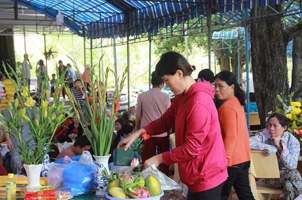 Người dân sửa soạn lễ vật để chuẩn bị dâng lễ cúng Đức Thánh Mẫu tại Am Chúa