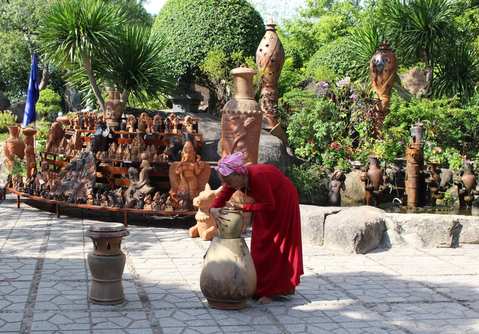 Nghệ nhân đồng bào Chăm đang tạo ra sản phẩm gốm