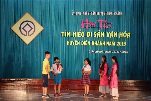 Sáng ngày 15/11, tại Hội trường Trung tâm Văn hóa - Thể thao huyện Diên Khánh. Trung tâm văn hóa - thể thao huyện Diên Khánh; Phòng Giáo dục và Đào; Phòng Thông tin - Văn hóa tạo phối hợp với Trung tâm bảo tồn di tích Khánh Hòa tổ chức hội thi tìm hiểu di sản văn hóa năm 2019. Tham gia hội thi có 3 trường THCS trên địa bàn huyện Diên Khánh gồm: Tiểu học và THCS Diên Tân; THCS Đinh Bộ Lĩnh và THCS Ngô Quyền.