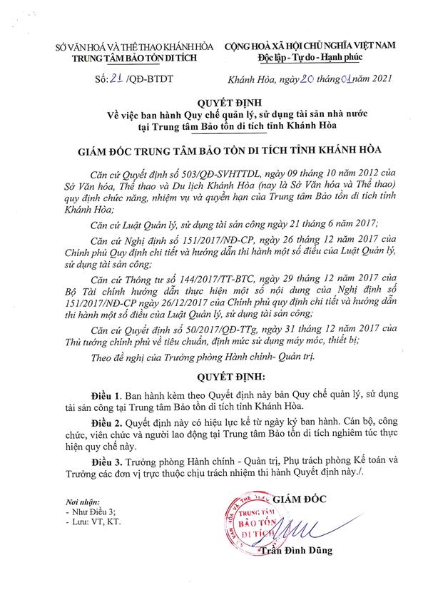 Quy chế quản lý, sử dụng tài sản công tại Trung tâm Bảo tồn di tích tỉnh Khánh Hòa: