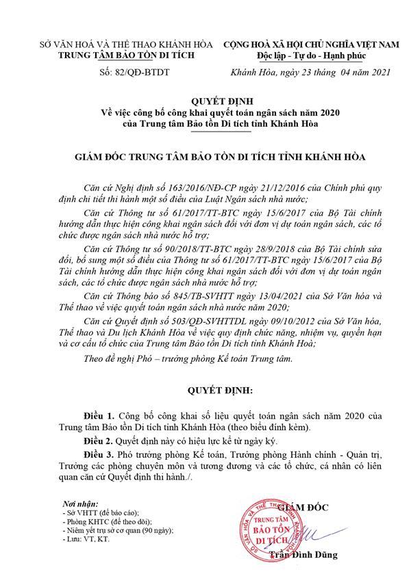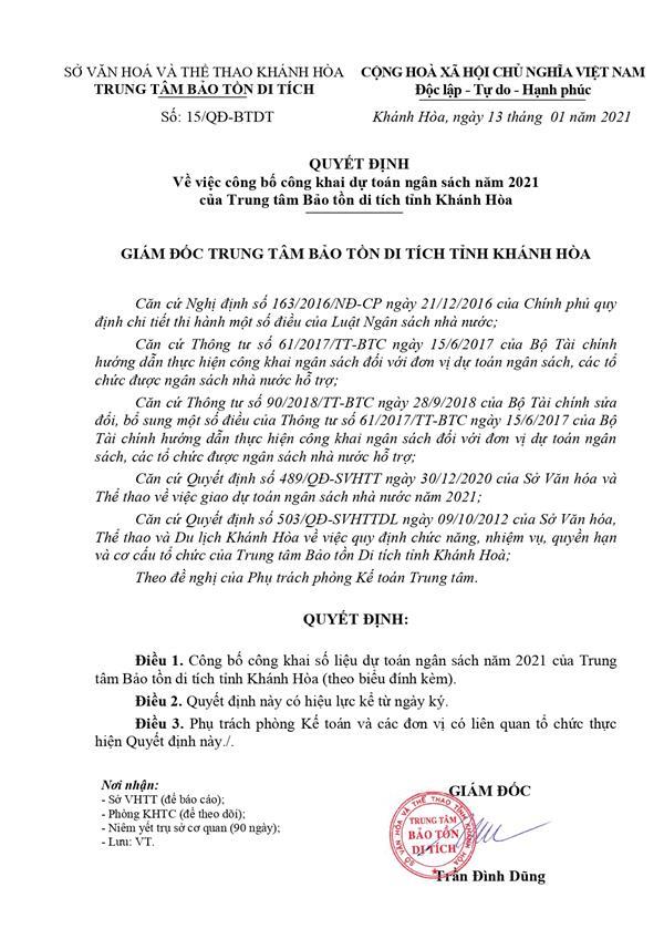 QUYẾT ĐỊNH CÔNG KHAI DỰ TOÁN NGÂN SÁCH NĂM 2021 VÀ CÔNG KHAI NGÂN SÁCH NĂM 2020
