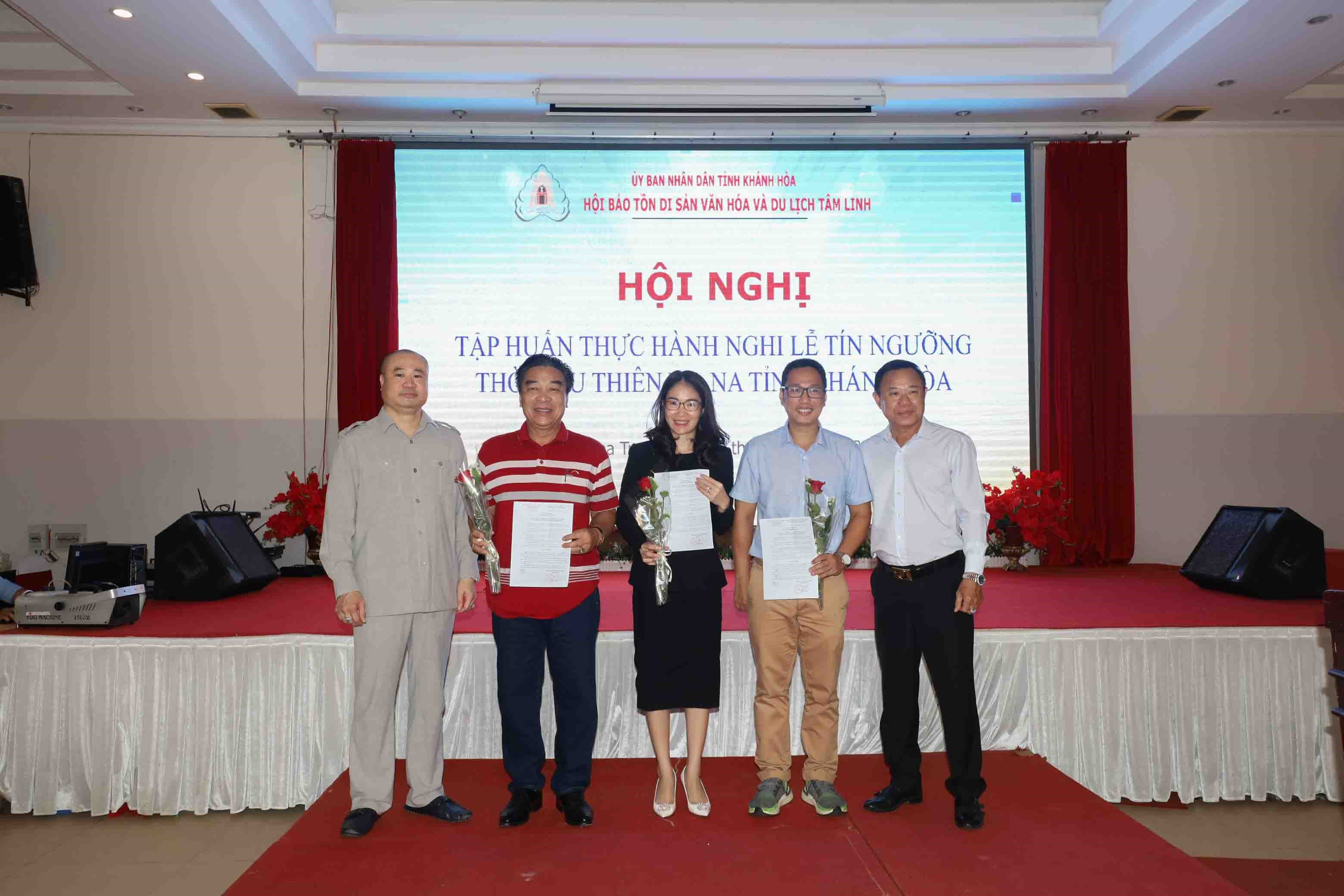 Nhân dịp này, Hội Bảo tồn Di sản văn hóa và Du lịch tâm linh tỉnh Khánh Hòa thực hiện kết nạp mới 3 hội viên, nâng tổng số hội viên lên gần 170 người.